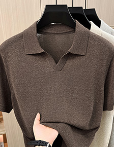 莫代尔+桑蚕丝 +编织特色电脑领新款短袖T恤POLO衫