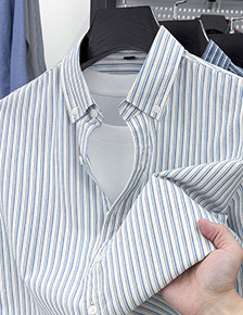 丝光棉粗珠地色织条,搭配袖口罗口+龟背衬衫布贴章,颜色新颖,时尚大方,主推跑量款