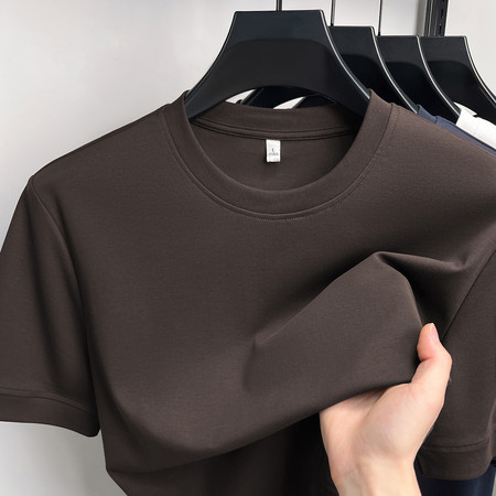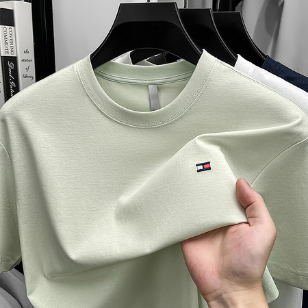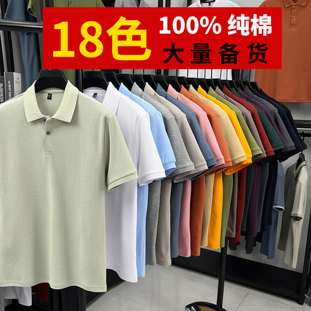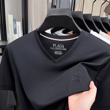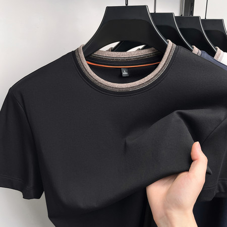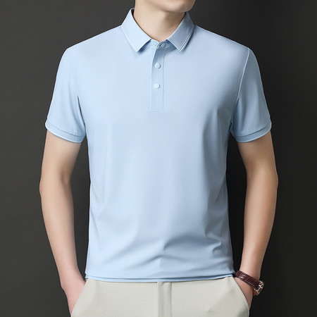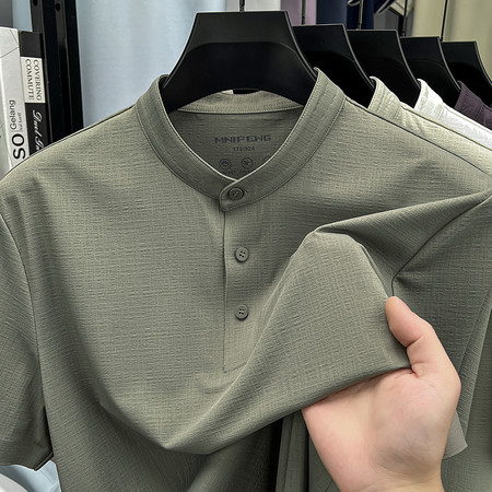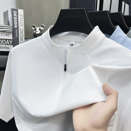 【2026新款短袖】t恤男夏季圆领打底衫半高领丝光棉半袖桑蚕丝V领纯棉翻领polo衫冰丝短袖纯色中年立领体恤
