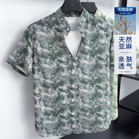【白板】52603T亚麻+莫代尔短袖衬衫7色可选【提供罗蒙 恒源祥 皮尔卡丹 雅戈尔 啄木鸟等整套平铺图 货源充足】