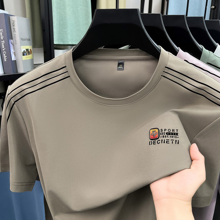 【2026新款短袖】t恤男夏季圆领打底衫半高领丝光棉半袖桑蚕丝V领纯棉翻领polo衫冰丝短袖纯色中年立领体恤